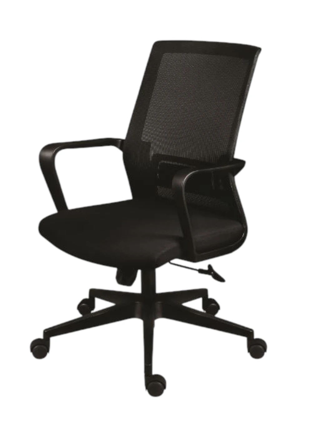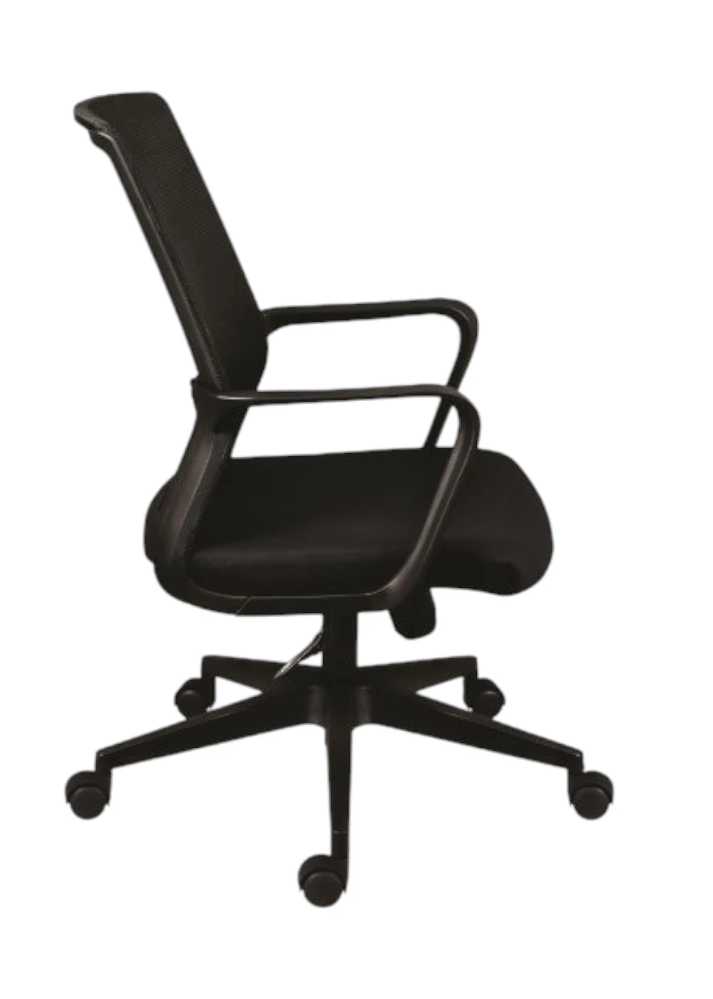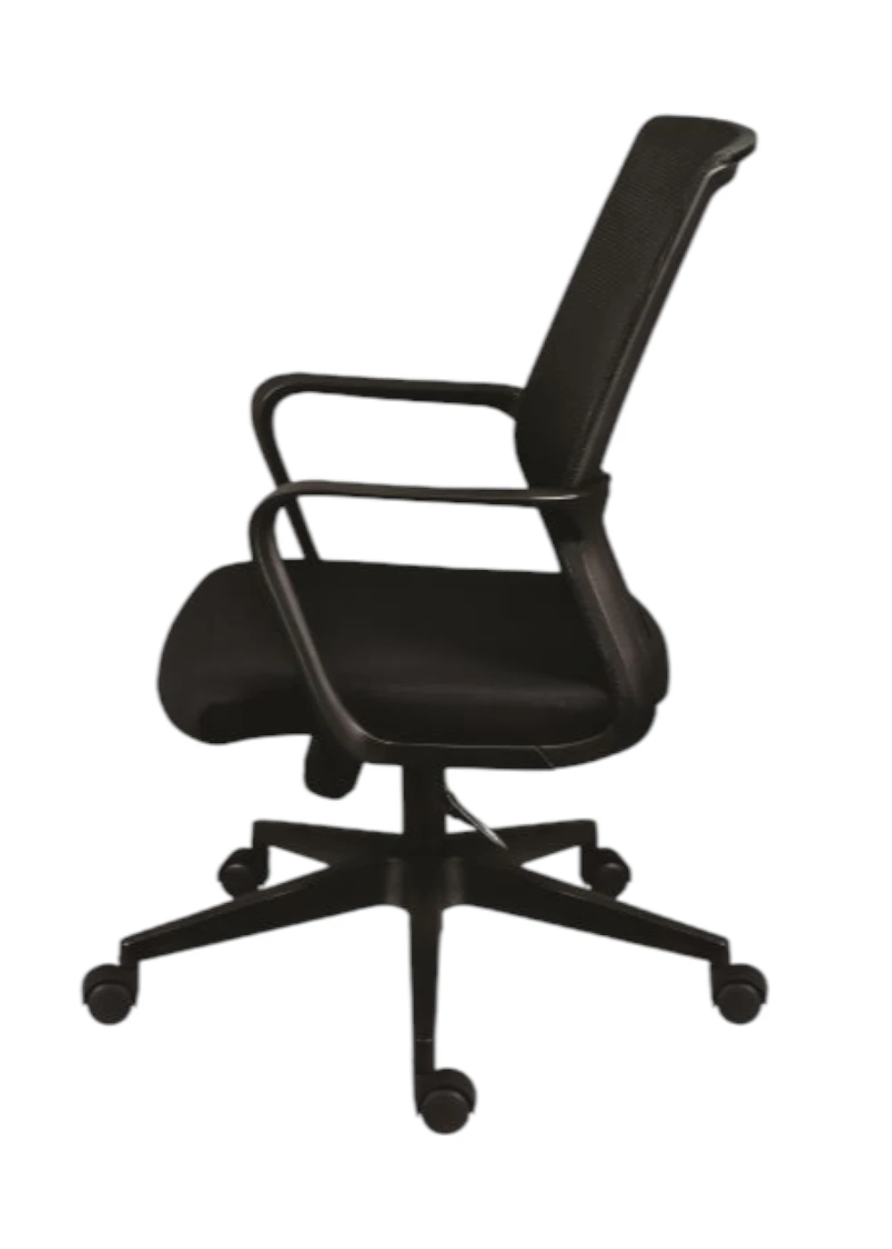 Su base de nylon negra aporta estabilidad y resistencia, mientras que su respaldo está revestido con una malla de alta calidad que garantiza una excelente ventilación y durabilidad.